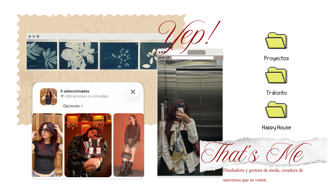 Dentro de mi trayectoria académica y creativa, he tenido experiencias que han fortalecido mi práctica. Mi proyecto de dirección fotográfica de moda “Happy House” fue publicado en la revista virtual Crudo, reconocimiento que validó mi capacidad para desarrollar una narrativa visual coherente y conceptualmente estructurada. Este proyecto me permitió explorar la construcción de atmósferas, el diálogo entre imagen y concepto, y la dirección estética como herramienta de storytelling. Asimismo, participé en el desfile de la universidad 2025 con mi proyecto de portafolio titulado “Tránsito”, una propuesta que aborda el cambio y la transformación como procesos constantes, materializados a través del vestuario. Esta experiencia consolidó mi interés por la puesta en escena, la relación entre cuerpo y espacio, y la capacidad del diseño para comunicar estados emocionales y procesos internos.